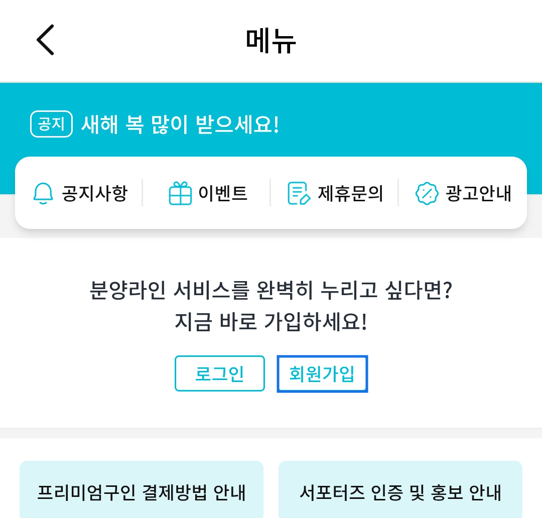 회원탈퇴는 사용하시는 환경에 따라 APP 또는 PC 중 해당하는 방법을 선택하시면 됩니다. ※ 회원탈퇴를 진행하시면 기존 아이디로 재가입은 영구적으로 불가하며, 아이디와 데이터는 복구할 수 없으니 신중하게 선택해 주세요. [APP] 1) 상단 좌측 메인메뉴 버튼 터치 > 고객센터 > 서비스 해지 터치 2) 해지 전 안내사항 확인 및 해지 사유 선택 3) 비밀번호 입력 후 서비스 해지 버튼 터치 시 해지 진행 [PC] 1) 고객센터> 서비스해지 2) 분양라인 서비스 해지 안내 서비스 해지 동의 클릭 3) 해지사유 선택 4) ID, 비밀번호 입력 5) 서비스 해지 버튼 클릭 |