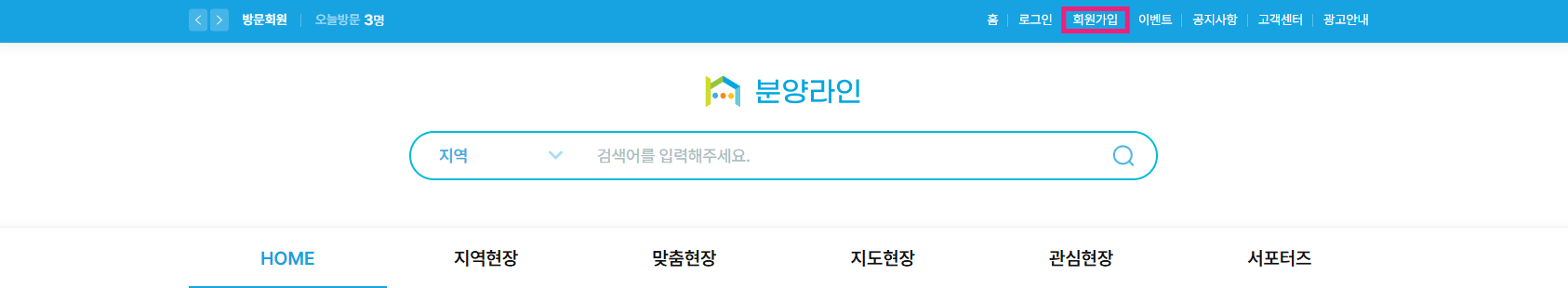 → 일반 메뉴바 ▷ 회원가입 클릭